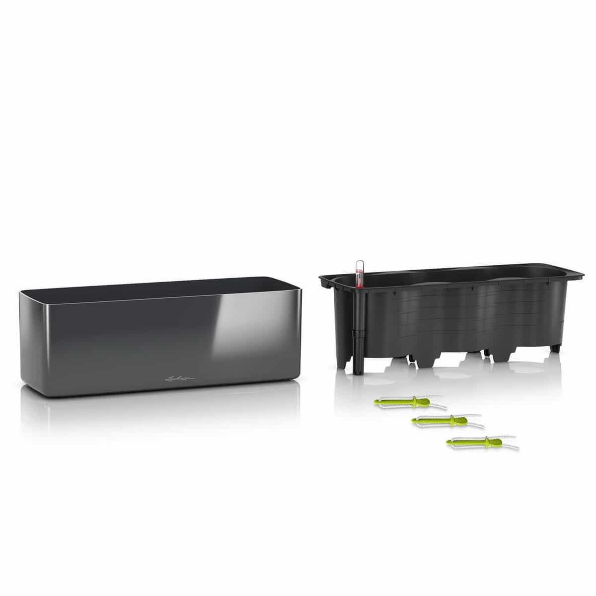 Glossy Balcony Planter brings modern glamour to the living area. The planters with high-quality lacquered surfaces are gleaming eye-catchers and give rooms an elegant touch. The trend-setters not only look classy, but also impress with their integrated watering system, which reliably takes care of the plants.