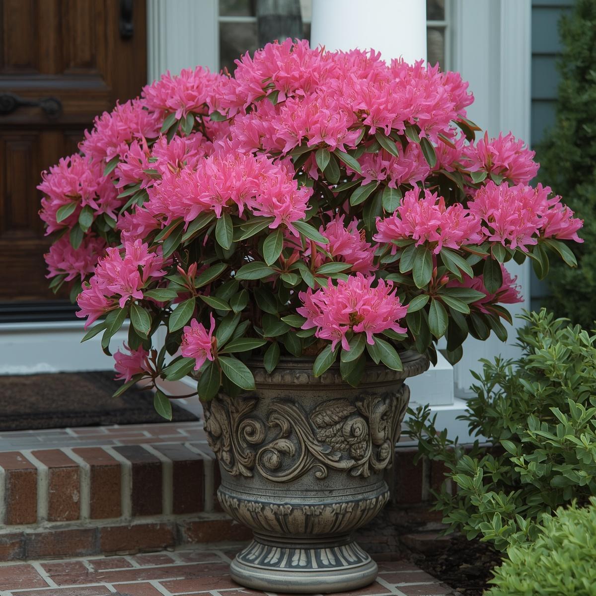 In addition to its spectacular flowers, Rhododendron is valued for its evergreen foliage. The large, leathery leaves provide year-round interest and structure, ensuring your garden remains attractive even outside the flowering season. This makes Rhododendron a key plant for creating a balanced and visually appealing garden design.